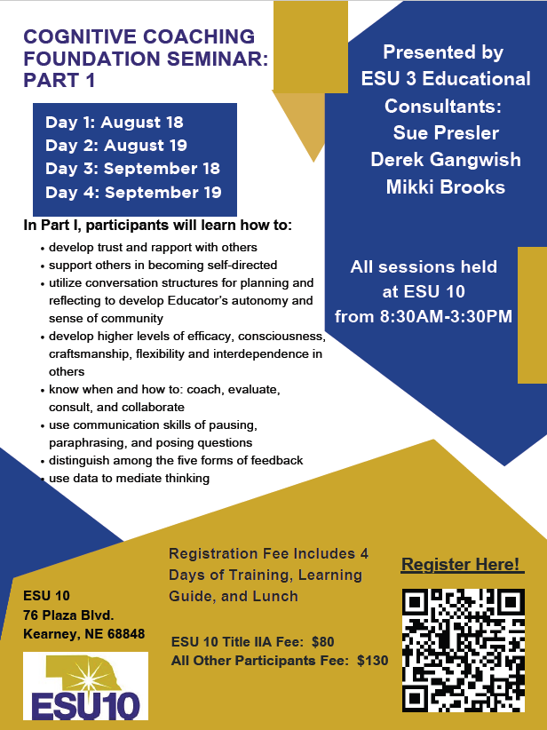 Facilitated by: ESU 3 Professional Learning Consultants, Susan Presler, Mikki Brooks, and Derek Gangwish