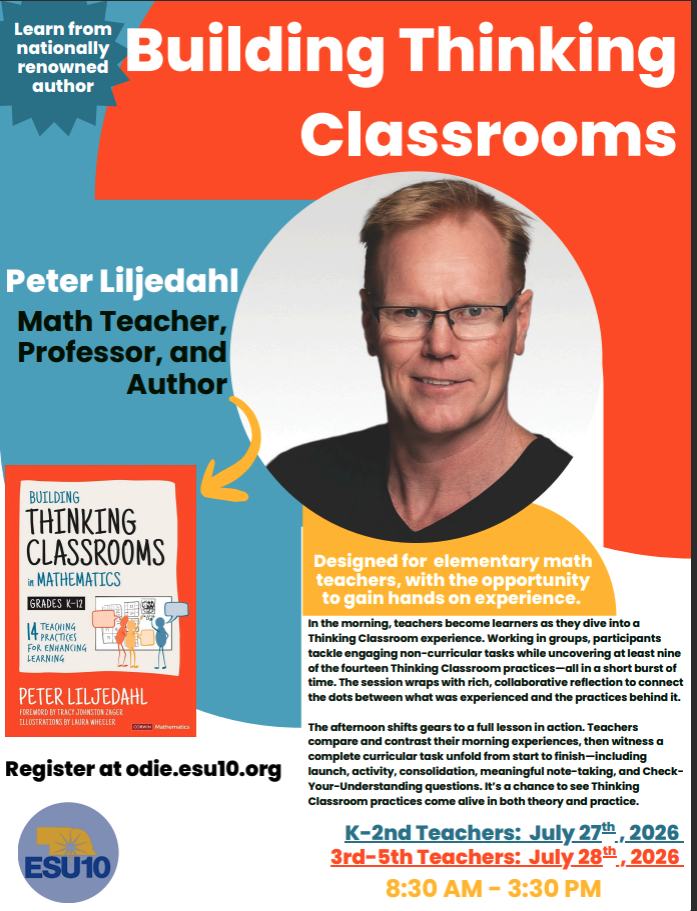 | Description | | 3rd-5th grade teachers will have the opportunity to learn from Peter Liljedahl, the author of “Building Thinking Classrooms in Mathematics”, a book focused on encouraging students to go beyond just following along with instruction, but actually developing into mathematical thinkers.