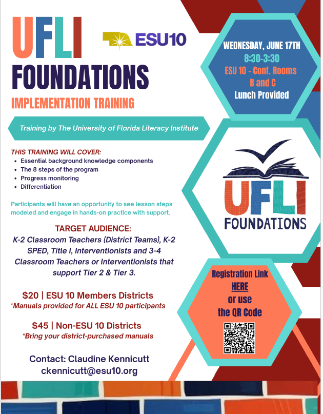 The University of Florida Literacy Institute Implementation training will provide participants with an in-depth overview of the UFLI Foundations program. The training session will cover essential background knowledge components, the 8 steps of the program, and progress monitoring and differentiation. Participants will have an opportunity to see lesson steps modeled and engage in hands-on practice with support. Training provided by UFLI.