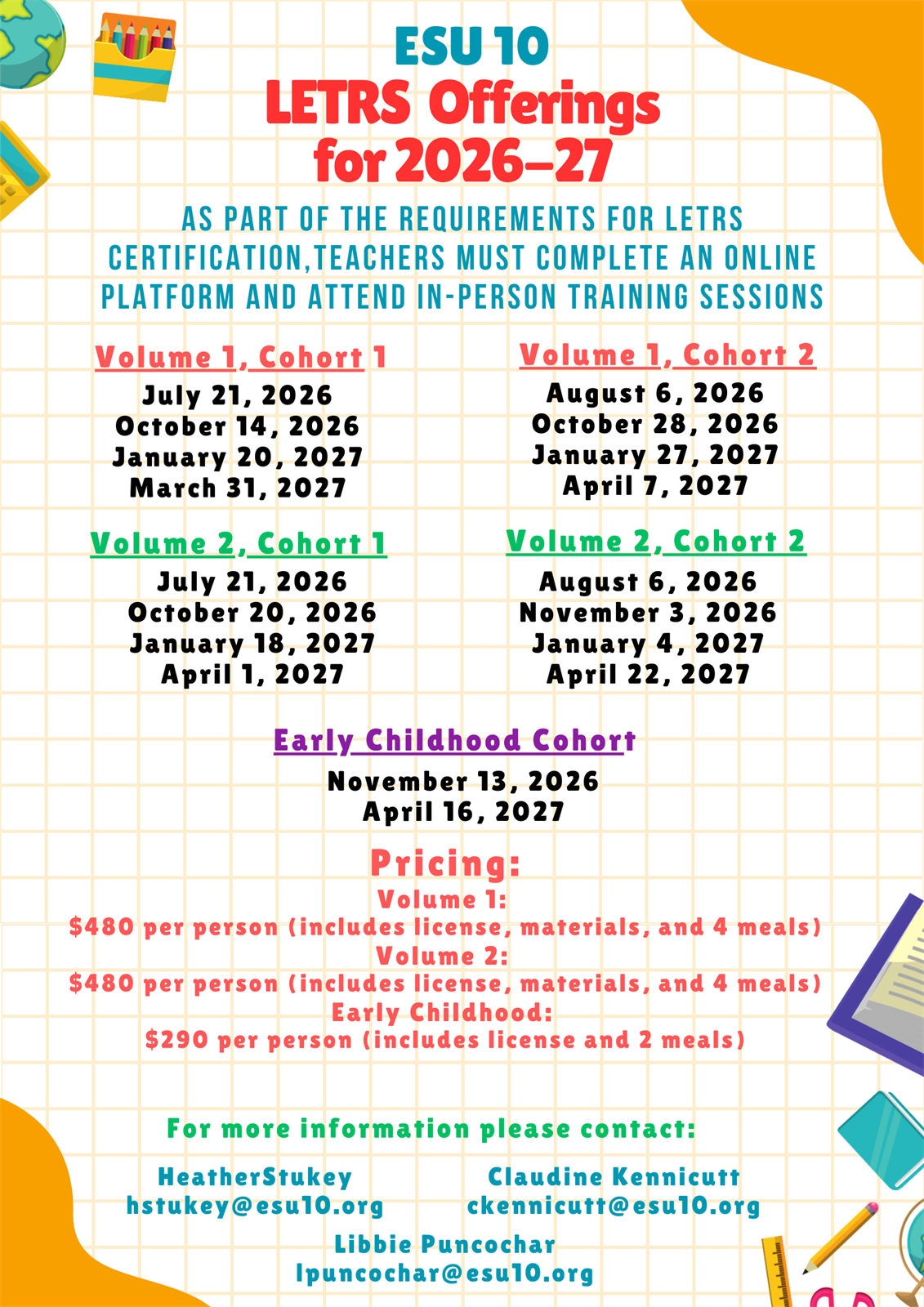 | Materials Required | | Materials Required: Vol. 1 LETRS Training Manual/1 year license $399 per manual included in registration fee |